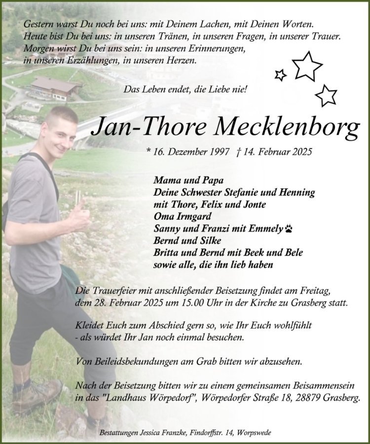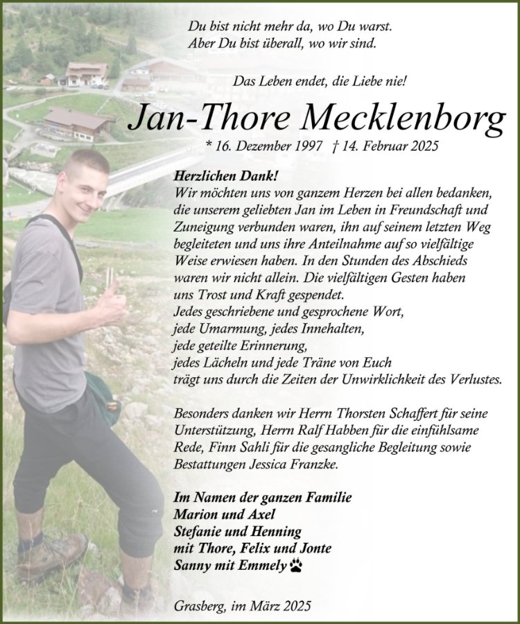 Du fehlst uns sehr, Jan.